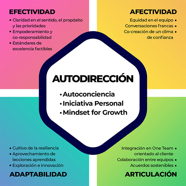 Trabajamos con un modelo de liderazgo que integra las cinco áreas de responsabilidad que todo líder necesita monitorear en contextos complejos.